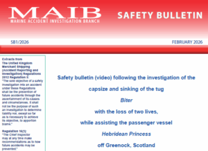 The MAIB has this week published a safety warning video addressing the tragic capsize of the conventional tug Biter in
